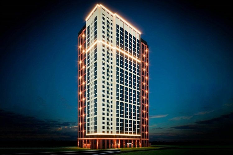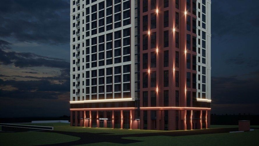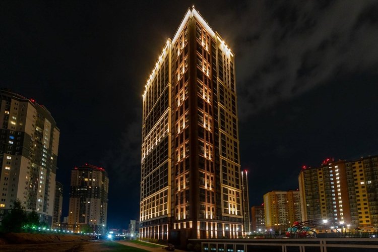 Новый одноподъездный дом на 474 квартиры, с двухсветным вестибюлем, с 6 лифтами и витражным остеклением на 29 этажей, приковывает к себе внимание яркой индивидуальностью, высоким уровнем качества строительства и элегантной архитектурой с декоративной подсветкой.